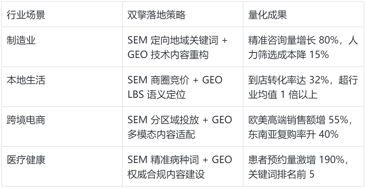 双擎并行已在多行业验证商业价值,核心体现在 “转化效率提升” 与 “成本结构优化” 两大维度: